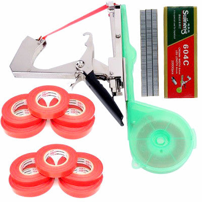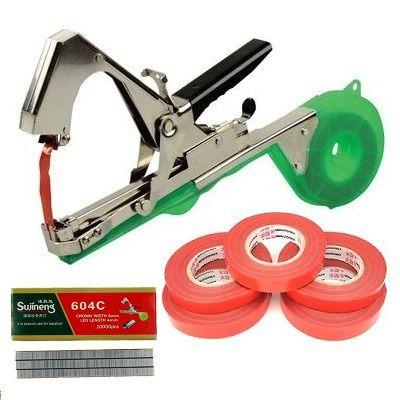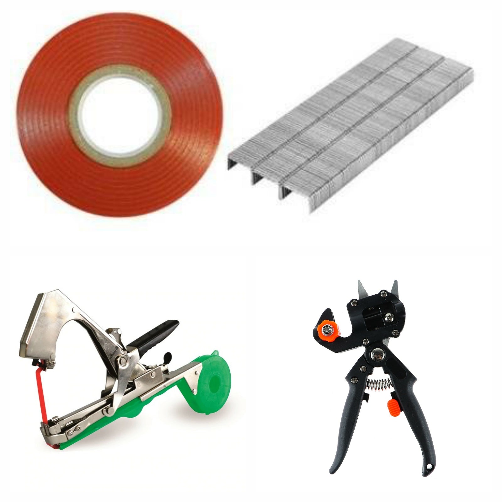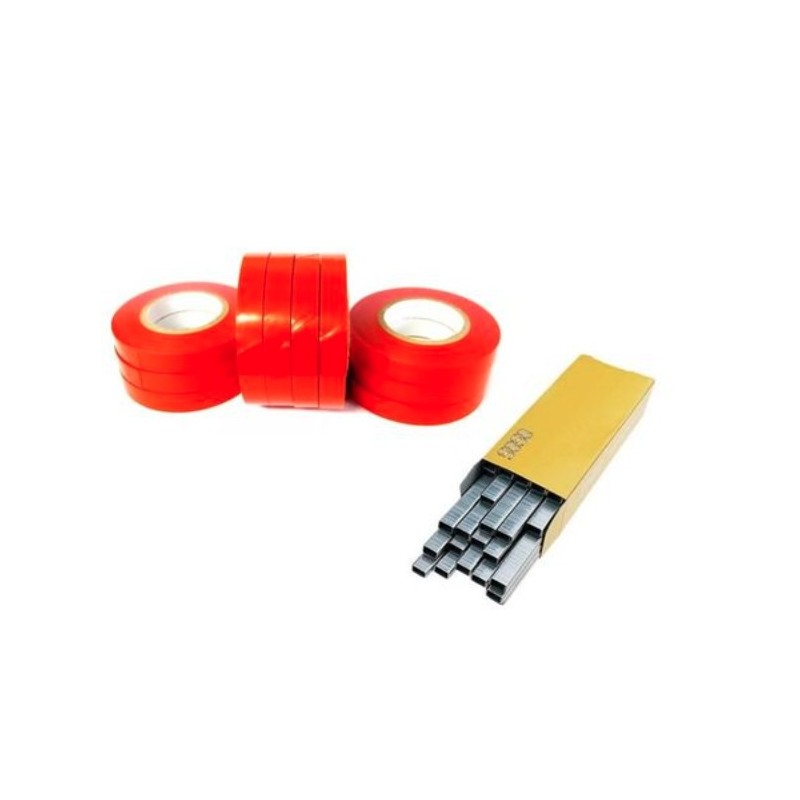 Oferta noastră include tot ce aveți nevoie: un aparat de legat vița de vie, 20 de role de bandă și 10.000 de capse. Acest set complet vă asigură că aveți toate materialele necesare pentru a începe imediat lucrul în grădină.