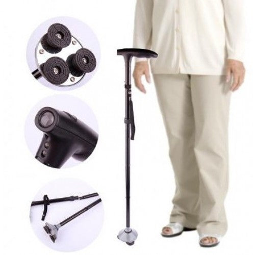 Bastonul pliabil Trusty Cane oferă un suport de încredere pentru persoanele în vârstă și cele cu dizabilități. Construit din oțel inoxidabil, acest baston este ușor, dar extrem de rezistent. Cele trei puncte de sprijin asigură stabilitate pe orice suprafață, fie că este lucioasă, cu pietre sau nisip.