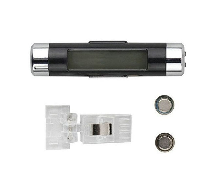 Ceasul Auto Digital, Iluminat, cu Termometru și Afișaj LCD este alegerea perfectă pentru șoferii care doresc să îmbine stilul cu funcționalitatea. Cu un design modern în culori de negru și argintiu, acest ceas se potrivește perfect în orice interior auto.