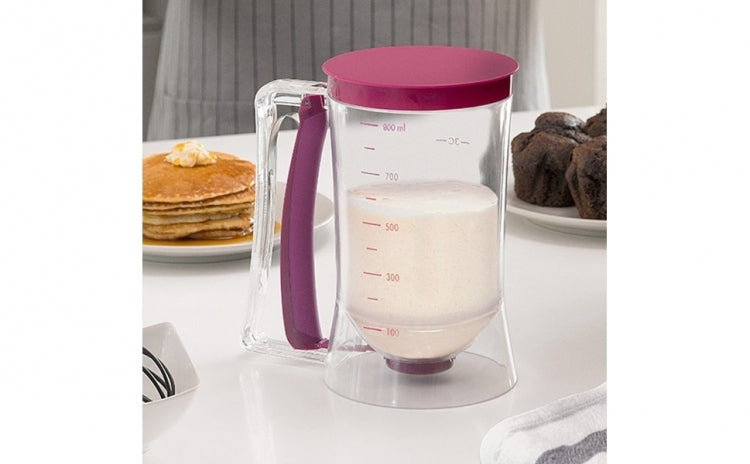 Dispenserul de aluat este proiectat pentru a oferi precizie și a preveni mizeria în bucătărie. Pur și simplu umpleți recipientul cu aluat, plasați-l deasupra tigăii și apăsați mecanismul de pe mâner pentru a elibera cantitatea dorită. Astfel, veți obține deserturi perfect dimensionate de fiecare dată.