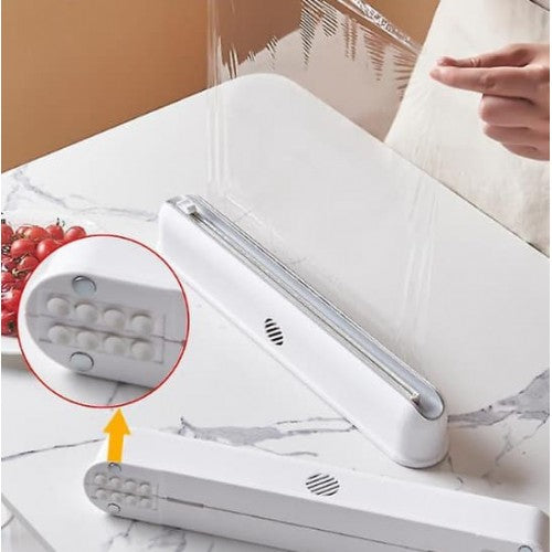Cu un inovator Slide Cutter, acest dispenser asigură o distribuire și tăiere perfectă a foliei de plastic. Este ideal pentru folii cu o lungime de până la 300 mm, făcând împachetarea alimentelor rapidă și ușoară.