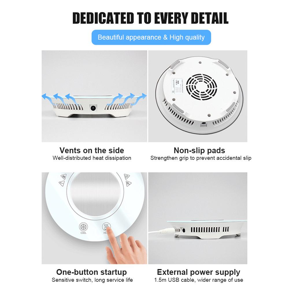 Dispozitivul nostru inovator pentru menținerea băuturilor calde și reci este perfect pentru cei care petrec mult timp la computer. Cu funcția de încălzire, ceaiul sau cafeaua dumneavoastră vor rămâne calde toată ziua, la o temperatură plăcută de 50-60°C.