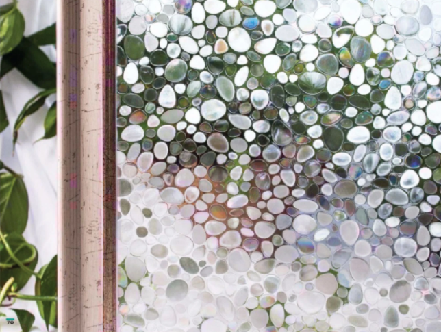 Cu un efect 3D ce imită piatra sau cărămida, folia aduce un mediu vitrat sablat și o lumină plăcută cu irizații subtile. Bucurați-vă de intimitate și protecție împotriva radiațiilor UV nocive, fără a compromite stilul modern al locuinței dumneavoastră.
