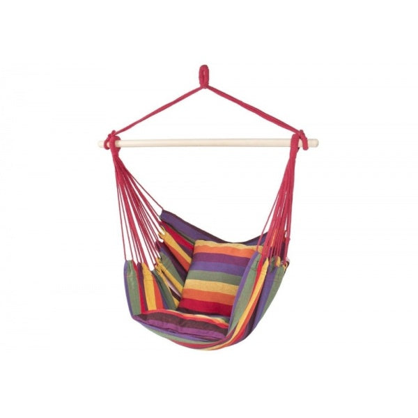 Hamacul tip scaun este ușor de instalat și întreținut, fiind perfect pentru cei care doresc să adauge un element de relaxare în spațiul lor exterior fără eforturi mari. Bucură-te de confort și stil cu acest hamac versatil.