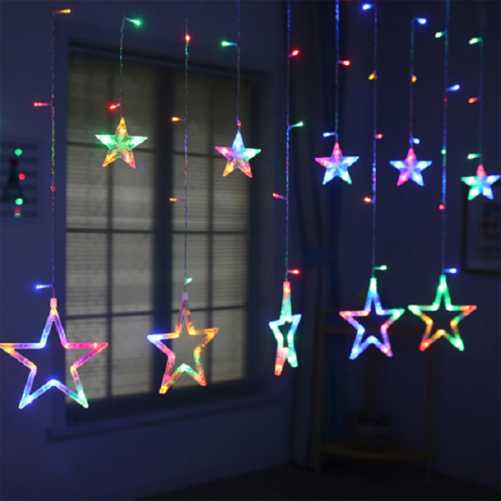 Instalatie Craciun - perdea luminoasa ploaie 12 stele multicolora