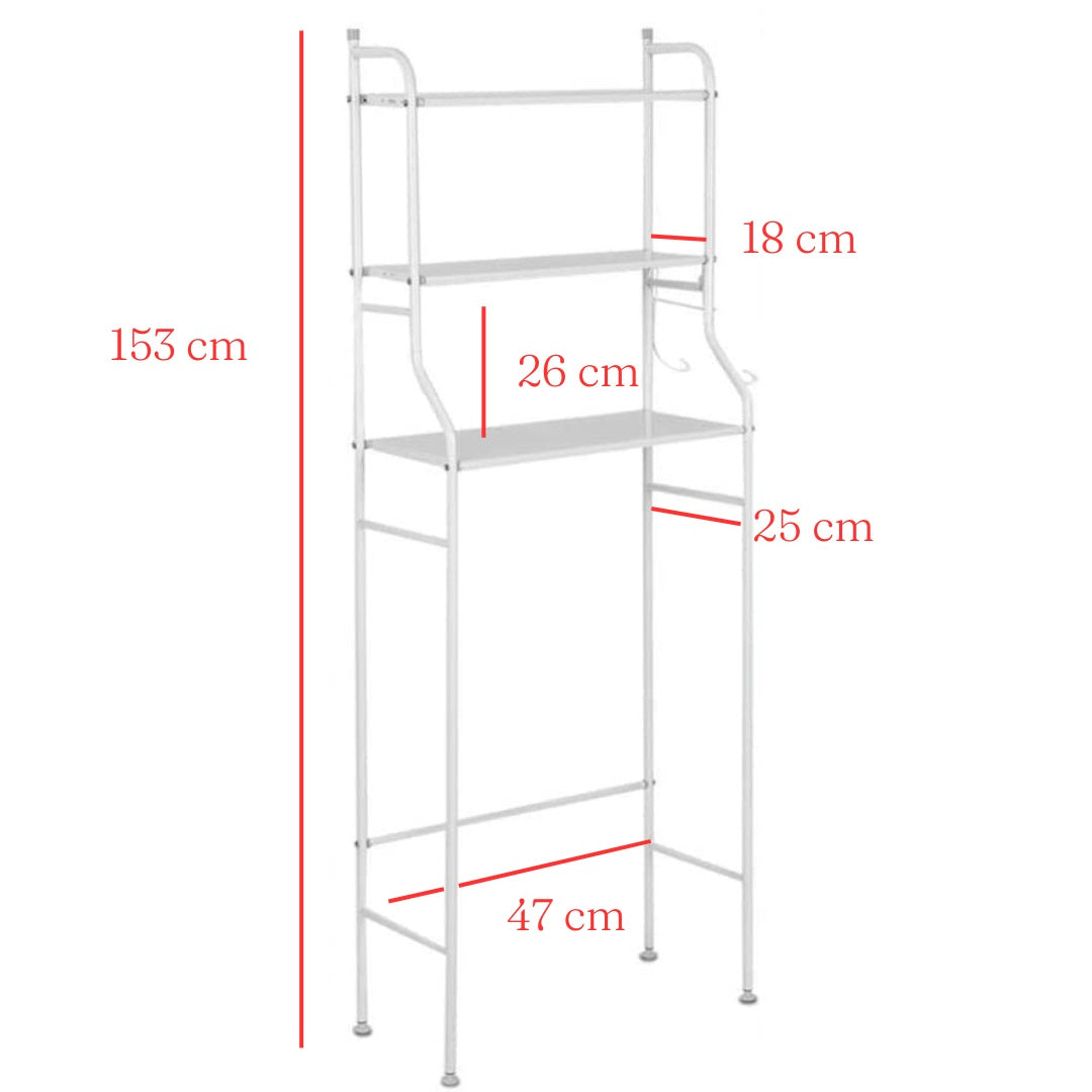 Fabricat dintr-un cadru metalic rezistent, acest raft de depozitare asigură stabilitate și durabilitate pe termen lung. Cu trei etajere spațioase, veți avea suficient loc pentru a depozita toate produsele esențiale, de la șampoane și geluri de duș până la prosoape și accesorii de baie.