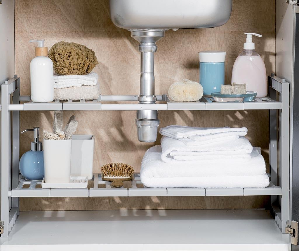Raft Organizator Extensibil Sub Chiuveta Bucatarie, Baie, Alb