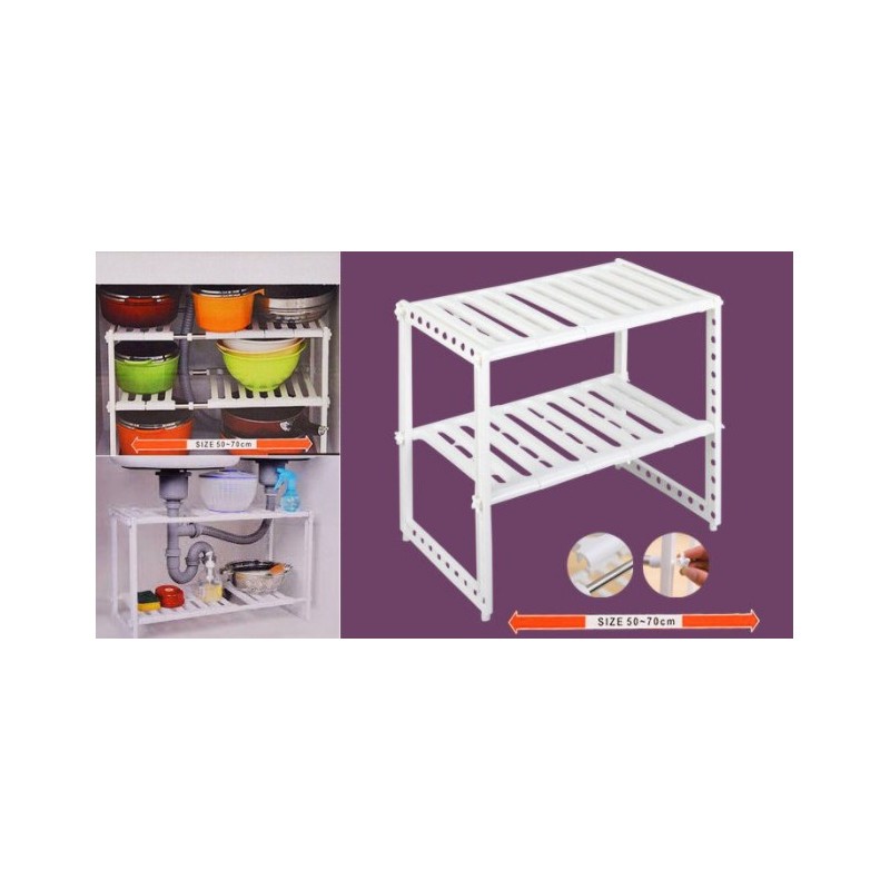 Cu o lungime ajustabilă de la 50 cm la 70 cm și două niveluri reglabile, acest raft extensibil se adaptează nevoilor dumneavoastră. Ideal pentru depozitarea oalelor, tigăilor și altor obiecte de uz casnic, oferind o soluție de organizare versatilă pentru bucătărie sau baie.