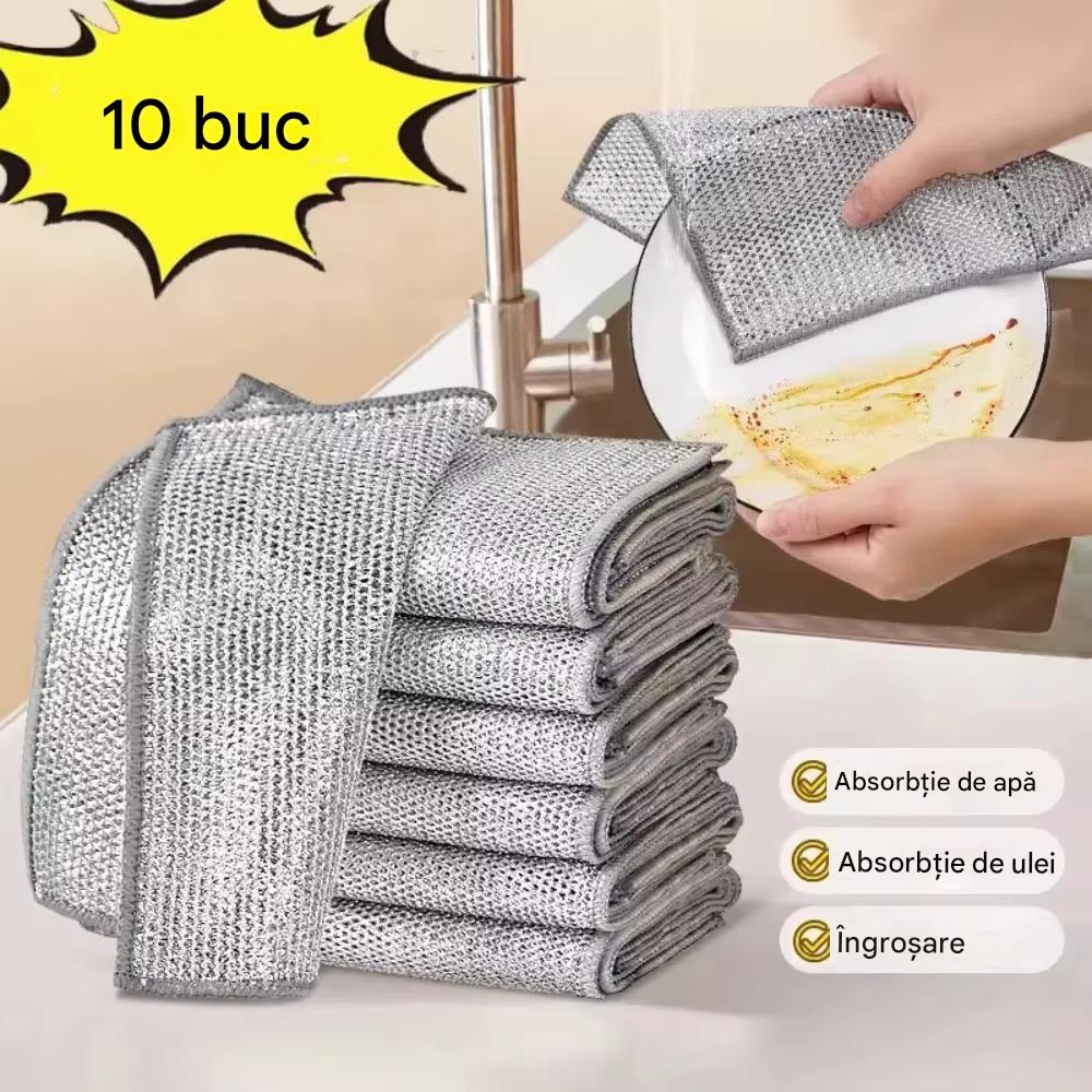 Set de 10 lavete din microfibra cu fir metalic, reutilizabileCurata eficient grasimea, petele si murdaria persistenta