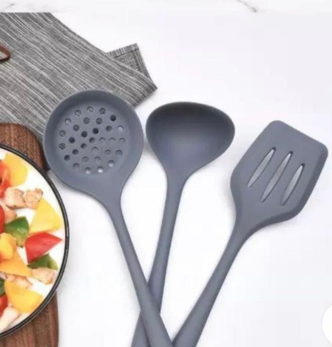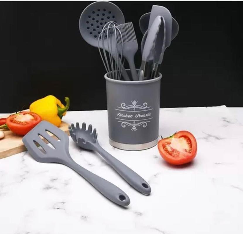 Transformați experiența gătitului cu setul nostru de 11 ustensile de bucătărie din silicon gri. Acest set include toate instrumentele esențiale de care aveți nevoie: clește, tel, pensulă, lingură cu fante, turner cu fante, ustensilă pentru paste, lingură, spatulă, lingură solidă, turner solid și ustensilă pentru ciorbă. Fiecare piesă este proiectată pentru a vă satisface toate nevoile culinare.