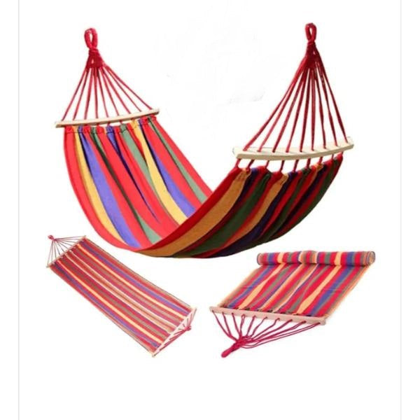 3. Hamac Colorat cu Două Bare din Lemn