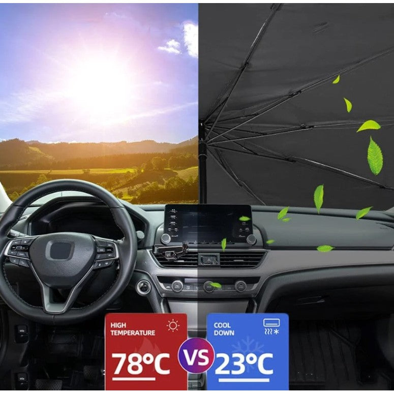 Descoperiți parasolarul pliabil în formă de umbrelă, soluția ideală pentru a proteja interiorul mașinii de razele solare dăunătoare. Cu o izolare termică superioară, acest accesoriu reduce eficient temperatura din interiorul vehiculului, oferindu-vă confort maxim în zilele toride de vară.
