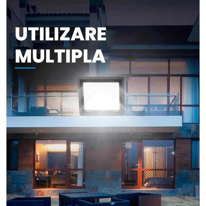 Cu un grad de protecție IP66, aceste proiectoare sunt rezistente la praf și apă, fiind ideale pentru utilizare în exterior. Carcasa din aluminiu și sticla temperată asigură o durabilitate maximă, protejând componentele interne de condițiile meteorologice nefavorabile.