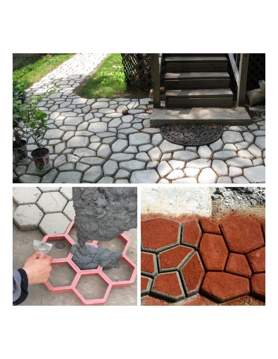 Cu instrucțiuni simple de utilizare, sablonul pentru pavele este ideal pentru oricine dorește să își îmbunătățească grădina. Pregătește zona, amestecă betonul, umple forma și în câteva minute vei avea un pavaj perfect. Repetă procesul pentru a acoperi întreaga suprafață dorită.
