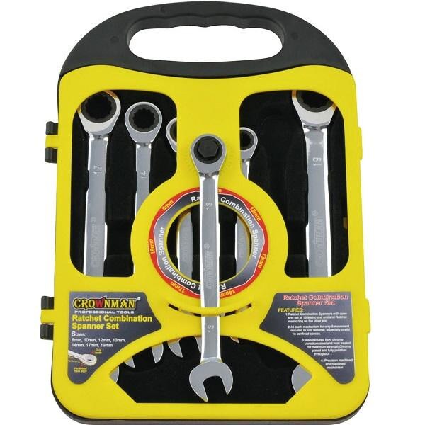 Setul include 7 chei cu dimensiuni variate (8 mm, 10 mm, 12 mm, 13 mm, 14 mm, 17 mm, 19 mm), fiecare având o manetă pentru schimbarea sensului și o înclinare a capului de 15 grade. Aceste caracteristici fac ca întoarcerea cheii în spații înguste să fie o sarcină ușoară și eficientă.