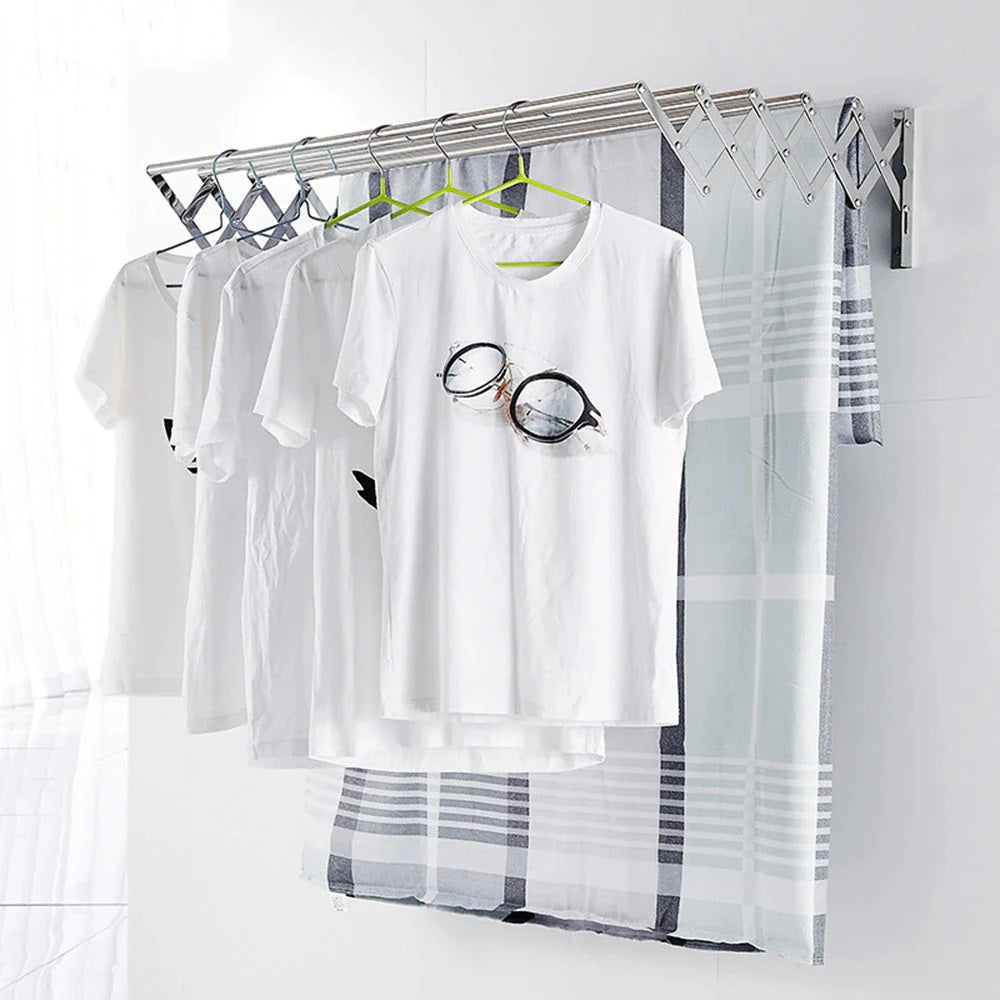 Transformați orice spațiu într-un loc eficient pentru uscarea hainelor cu Suportul de Haine Telescopic și Retractabil. Conceput pentru a fi montat pe perete, acest uscător din aluminiu rezistent economisește spațiu și oferă o soluție practică pentru uscarea hainelor în locuința dumneavoastră.