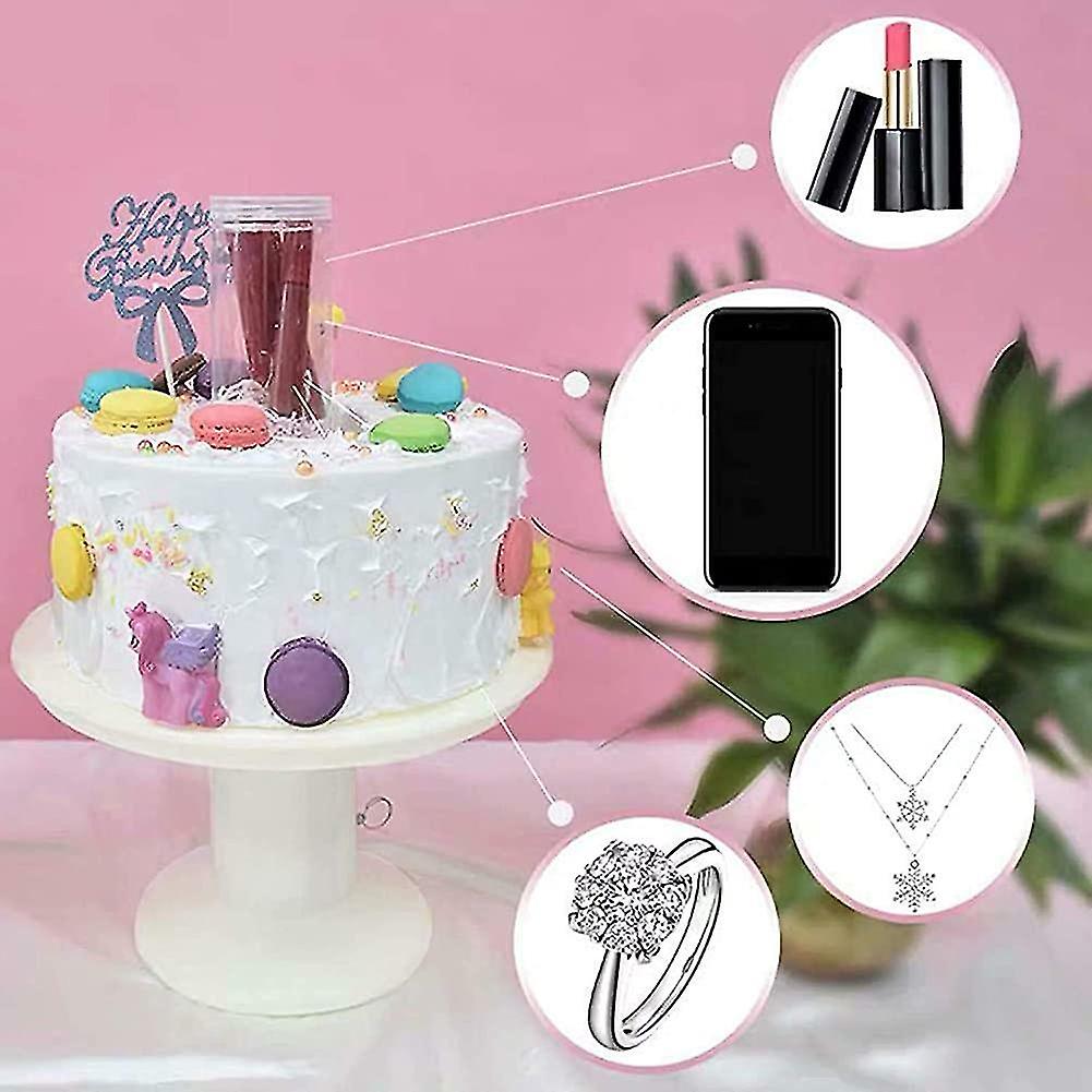 Cu un diametru de 7,5 cm, tubul interior este perfect pentru a ascunde un cadou special. Fie că este vorba de un inel, o bijuterie sau un mesaj personalizat, acest suport de tort adaugă un element de surpriză și bucurie fiecărei ocazii speciale.
