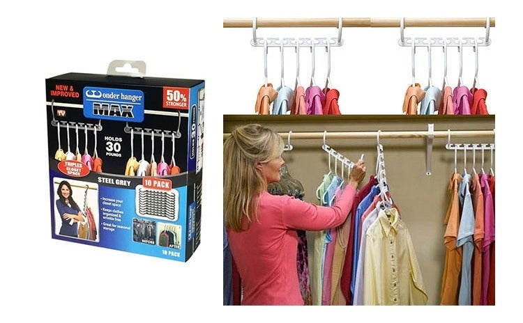 Transformați-vă dulapul cu Wonder Hanger Max, soluția ideală pentru organizarea hainelor. Cu 5 sloturi pentru umerașe, acest suport revoluționar economisește spațiu și vă ajută să păstrați ordinea în garderobă.