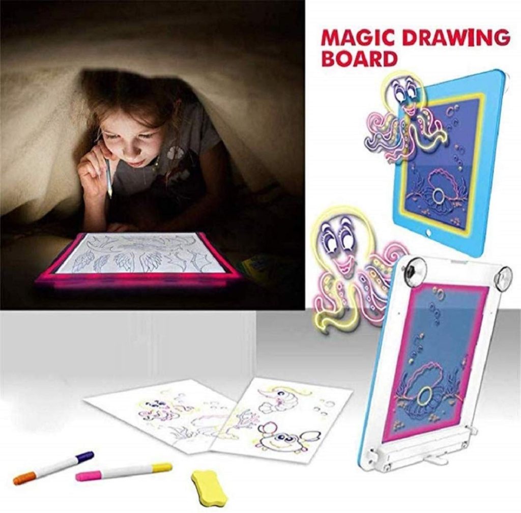 Tabla magica 3D de desenat transparenta, cu leduri